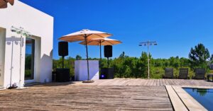 We provide affordable wedding sound and lighting hire in the Algarve, including PA speaker systems, wedding ceremony speakers, wireless microphones, and wedding DJ equipment hire for villa weddings, small wedding venues, and intimate outdoor weddings.